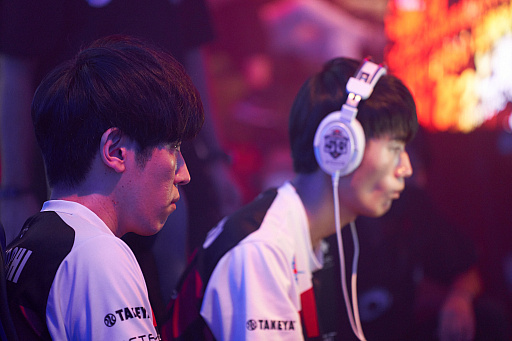 Yamaguchi選手には,師匠であるももち選手の期待に応えられるのかという注目が集まっていた。ルールはタッグマッチ形式のBO5で,1マッチ終了ごとにプレイヤー/キャラクターの交代が可能だが,チームの両プレイヤーがそれぞれ1勝しなければならないという縛りがある。つまり,強い選手が全員倒して勝つという作戦は使えない。