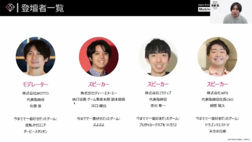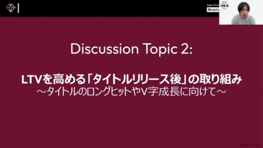 本稿では,その中で実施されたセッション「圧倒的なファンを獲得し,魅了し続けるモバイルゲーム戦略 〜LTV最大化のための取り組み,ユーザーから長く愛される秘訣とは〜」をレポートする。