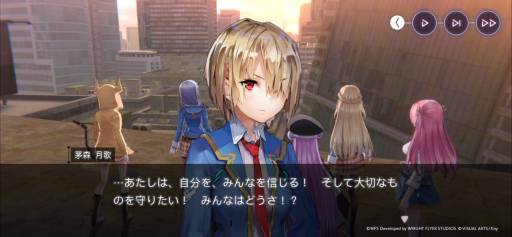 そうしたクリエイター陣の強みを消さないようにするために,ヘブバンはKeyの得意とするノベルゲームのように,基本的には時が流れ状況が変わり続けるという,運営型のゲームではあまり見ない仕組みを採用しているのだという。