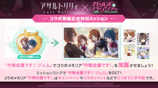 「ガールズ&パンツァー」コラボ開催を記念して、★5メモリアや専用覚醒素材が手に入る2大キャンペーンを開催!