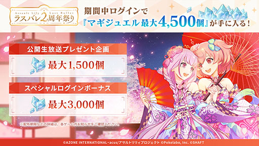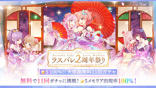 株式会社ポケラボ(本社:東京都港区、代表取締役社長:前田悠太、グリー株式会社100%子会社)は、株式会社シャフト(本社: 東京都杉並区、代表取締役: 久保田光俊)と運営しているスマートフォン向けゲームアプリ「アサルトリリィ Last Bullet」が、2023年1月20日(金) に2周年を迎え、「ラスバレ2周年祭り」を開始したことをお知らせします。