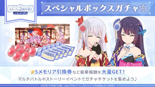 マルチバトル等で手に入る「ボックスガチャチケット〜どきどきの宴〜」で回すことのできる「ラスバレ2周年祭り 〜どきどきの宴〜 スペシャルボックスガチャ」も登場!