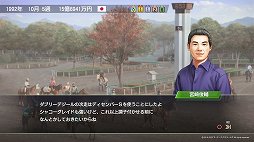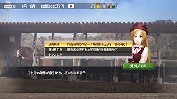 娘の1人は待望の騎手になった。新人ということで能力は決して高くないのだが,自牧場の馬の主戦騎手に任命し,騎手の能力を上げる絆コマンドはすべて彼女に注ぎ込み……と,自分でもビックリするほどに可愛がってしまった。前作だと,自分と騎手の関係はビジネスライクなもので,個人的に騎手系の絆コマンドはもったいなくてなかなか使えなかった。しかし,今回は娘が対象となるので,そうしたためらいは一切なく,自分の馬に娘が乗って勝った時などは,いつもの何倍も嬉しく感じられた。子孫継承システムがゲームのモチベーションへ大きな影響を及ぼすのだ。