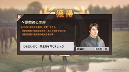 いくつかの絆コマンドは複数の効果を持つようになり,使用時に好きなもの1つを選べるようになっている。例えば「調教師との絆」なら「競走馬の調子を上げる」か「競走馬の疲労を癒す」。「現役牧場長との絆」なら「1歳幼駒のスピード育成度を上げる」か「種牡馬の評判を上げる」といった具合で,状況に合わせてどちらにも使える。つまり,1つの絆コマンドがプレイスタイルによって活用できるため,無駄がなくなったという印象だ。
