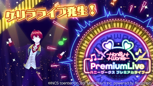 株式会社flaggs(本社:東京都品川区、代表取締役CEO:吉江直人)と株式会社インクストゥエンター(本社:東京都渋谷区、代表取締役:田村優)は、HoneyWorks初のスマートフォン向け公式リズムゲーム『HoneyWorks Premium Live(以下ハニプレ)』にて、本日11月8日(火)から11月14日(月)までの間、期間中通常楽曲をクリアすることで、稀に特別な楽曲がプレイできる『ゲリラライブ』が発生することをお知らせいたします。