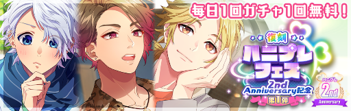 2nd Anniversaryを記念して、 過去に開催したハニプレフェスから恋雪とIV、 愛蔵の3人が★5キャラで再登場する「2nd Anniversary記念復刻ハニプレフェス第1弾」を開催いたします。