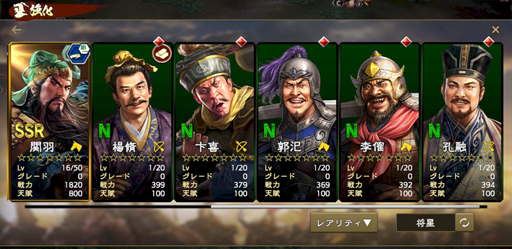 名を知られている人気武将なら,SSRおじさんでも構わない人は多いと思いますが,ノーマルレアのおじさんが増えてもコアなファンの方々以外には厳しいのが現実ですよね……。