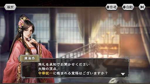 なお、戦略シミュレーションゲームをプレイするのが初めての場合でも、本作オリジナルのナビゲートキャラクターである盧蓮香(CV:上坂すみれ)が、内政・武将の育成・軍事の3つの要素をチュートリアルで丁寧に教えるので、何もわからずに始めても問題ありません。