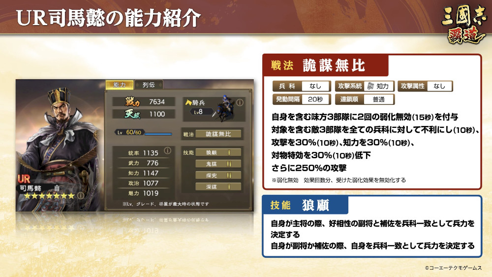 「三國志 覇道」新UR 武将“司馬懿”“貂蝉”を実装