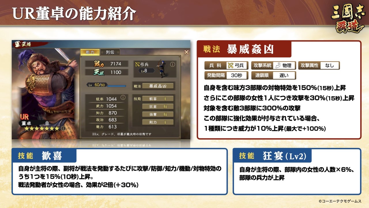 「三國志 覇道」,11月アップデートで新UR武将“董卓”“孫堅”らが登場