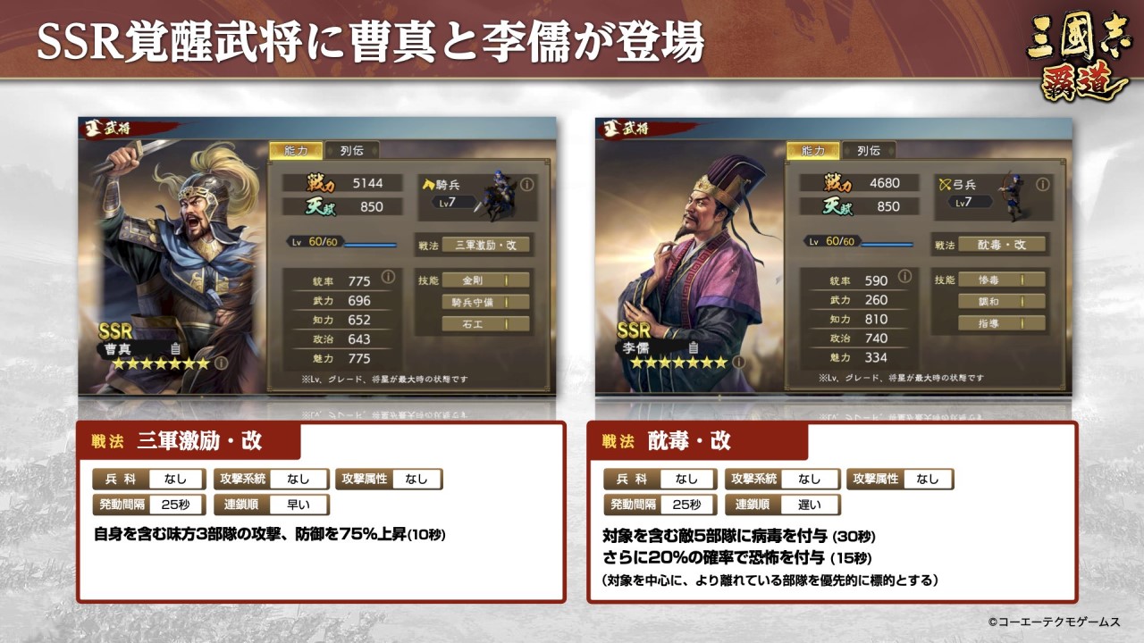 「三國志 覇道」UR武将“陸遜”,“小喬”,SSR覚醒武将“曹真”,“李儒”が追加