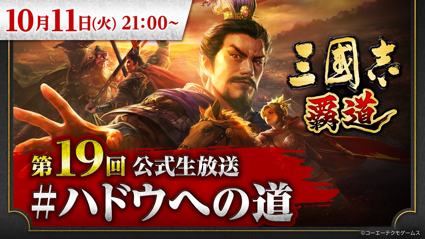 「三國志 覇道」公式生放送 #ハドウへの道!第19回を10月11日に実施