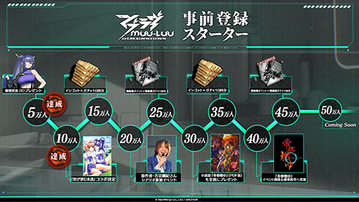 また、事前登録者数に応じてマブラヴファン必見の企画が決まる「事前登録スターター」も引き続き進行中です。現在は事前登録者数13万人を達成しており、「御剣冥夜(R)プレゼント」と「『君が望む永遠』コラボ」の実施が決定しています。