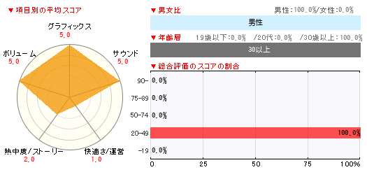 グラフィックス サウンド 快適さ/運営 熱中度/ストーリー ボリューム 5 5 1 2 5