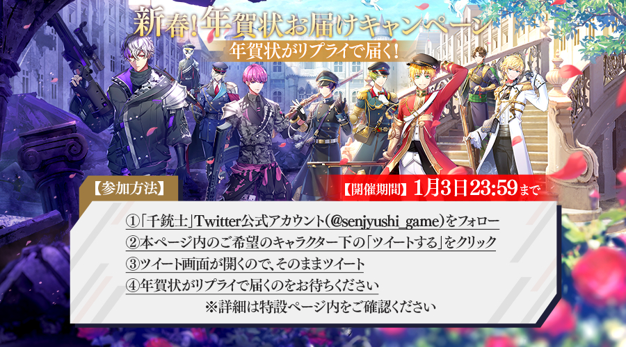 • 画像ギャラリー No.001 | 「千銃士:Rhodoknight」,グループリーダーがデザインされた年賀状が公開。“新春!年賀状お届けキャンペーン”の開催も