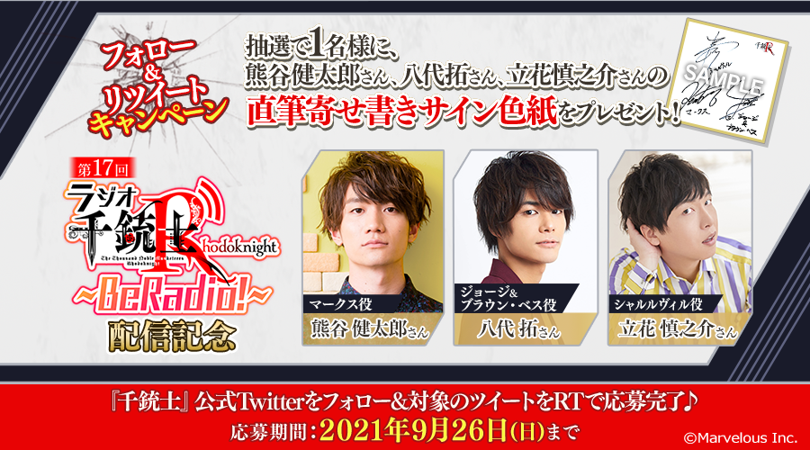 「千銃士:Rhodoknight」ネットラジオの第17回を本日配信。ゲストは立花慎之介さん