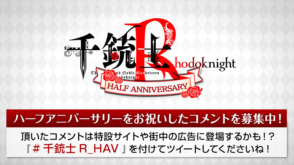 「千銃士:Rhodoknight」ハーフアニバーサリーに向けてお祝いコメントが募集中