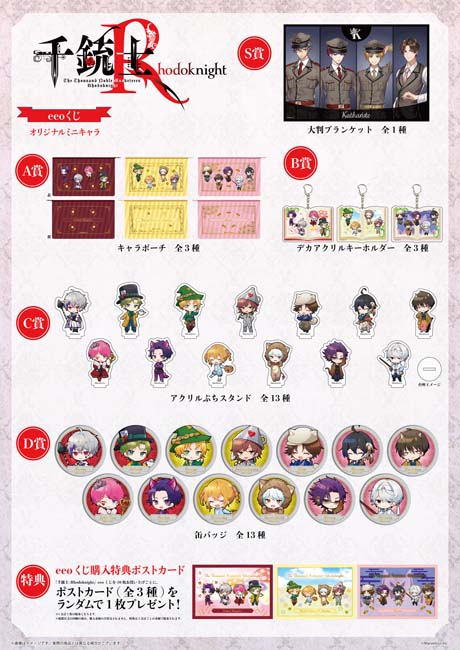 3月31日(金)から発売中の『千銃士:Rhodoknight』の「eeoくじ」では、S賞からD賞まで5つの景品が登場します。