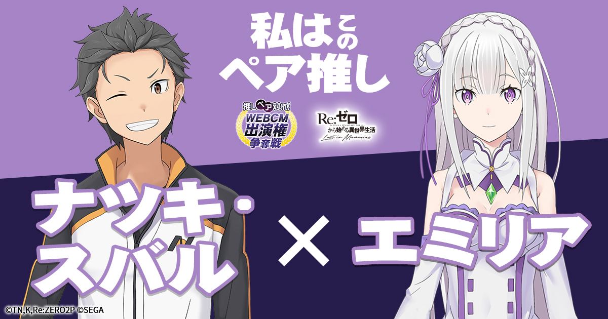 「Re:ゼロから始める異世界生活 Lost in Memories」のWebCM出演権をかけたキャラクター投票が開催