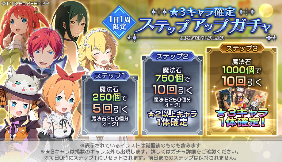 「リゼロス」,本日から“★3キャラ確定ステップアップガチャ”が開始。魔法石が入手できるログインボーナスも
