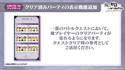 4月27日に予定されているアップデートで,プロフィール画面に各種十席や戦績が表示されるようになったり,一部のバトルクエストで,ほかのプレイヤーのクリアパーティーを見られるようになったりする