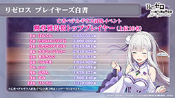 「リゼロス プレイヤーズ白書」というコーナーでは,コイン所持数や総力戦トッププレイヤーなど各項目の上位10名が発表された
