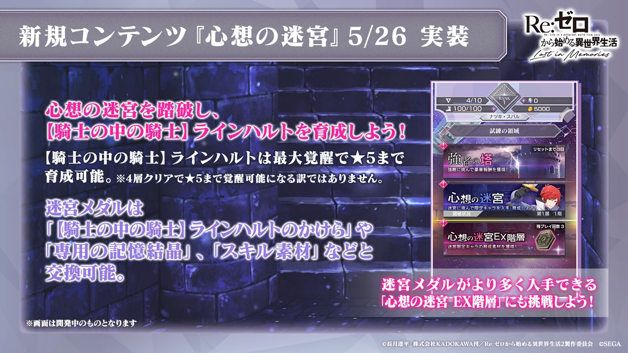 「リゼロス」の新コンテンツ“心想の迷宮”は5月26日に実装。新章2の続報も発表された生放送の模様をレポート