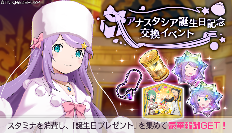 「リゼロス」,“アナスタシア誕生日記念 交換イベント”がスタート。「紫極の首飾り」など育成アイテムの獲得チャンス