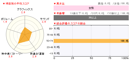 グラフィックス サウンド 快適さ/運営 熱中度/ストーリー ボリューム 2 2 2 3 1