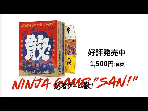 シンプルで決着が早い!いつでもどこでも手軽に遊べるのが魅力。忍者であるプレイヤーが、指令カードの内容に従って「散!」と言いながら場に忍者カードを出し、脱落せずに最後まで勝ち残ることで勝者となるカードゲームです。