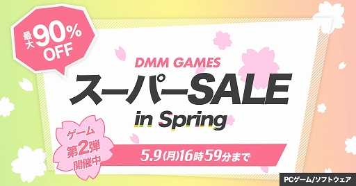 EXNOAは本日(2022年4月22日),同社が運営するDMM GAMES PCゲームフロアにて,対象タイトルなどが最大90%オフになる「スーパーSALE in Spring 2022」第2弾を開始した。期間は5月9日16:59まで。