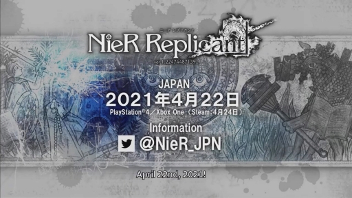 スクウェア・エニックスは本日(2020年9月24日)放送された,TGS公式番組「ニーアTGS2020特番 まぁまぁ新情報がありまスペシャル」にて,「NieR Replicant ver.1.22474487139…」の発売が2021年4月22日に決定したと発表した。なお,PC版のみ4月24日に発売される。※2020年9月24日22:50頃,プレスリリースを追記しました。