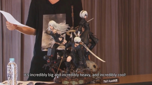 NieR Re[in]carnationの紹介のあとは,NieR:Automataのシニア・ゲームデザイナーであるプラチナゲームズの田浦貴久氏が登場。NieR:Automataの世界累計出荷,ダウンロード販売本数が500万突破と聞いて出演をOKしたら“485万本突破”だった……という掴み(?)ののち,スクウェア・エニックスとプライム1スタジオが製作を進めているポリストーンフィギュアシリーズ第1弾「SQUARE ENIX MASTERLINE NieR:Automata」の見本を紹介した。発売日は2021年冬以降,価格などの詳細は不明だが,かなりのクオリティで今後の情報発表も楽しみなところだ。