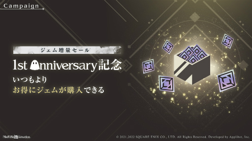 1st Anniversary を記念して、通常よりもお得にジェムを購入することができるセールを開催いたします。