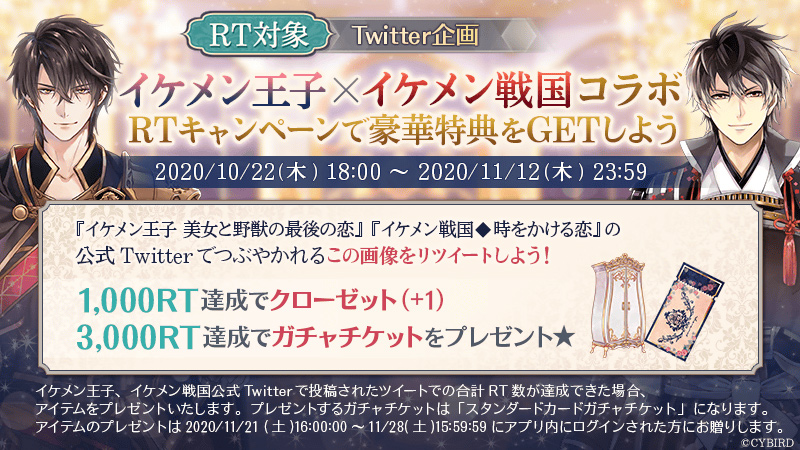 「イケメン王子」と「イケメン戦国」のコラボキャンペーンがアプリ内&SNSで開催
