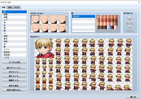 ↑同じ素材でも「オフセット」ボタンで位置を調整することで、オリジナリティーのあるキャラを作成できます。