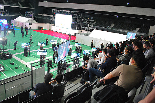 全体を通して,今回の一番の注目ポイントは,すべての競技が一つの会場に集まっていたことだ。メインアリーナ内にそれぞれの競技ブースが設置され,各ブースの前に観覧用の座席が区切られており,客席をグルっと回っていけば簡単にそれぞれのブースの前に移動できる。一番遠いブースでも1分ほどで移動できるため,手軽にさまざまな競技が見られるという点で,カジュアルに楽しめる会場だった。