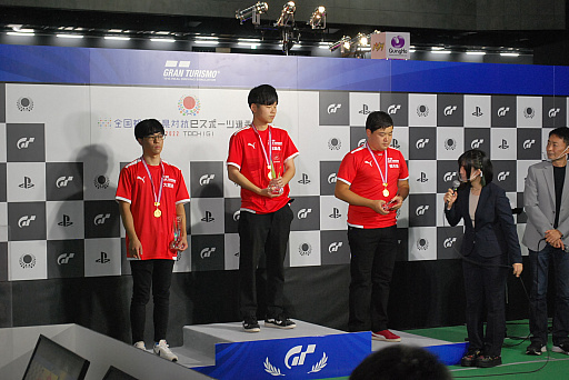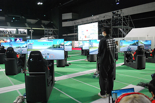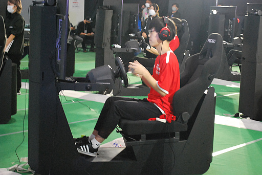 今回の大会の中で,1,2を争うギャラリーを集めていたのが「グランツーリスモ7」だ。1つのレースで参加する出場者が多いため,ブースも大きめに作られており,ズラっと並ぶ専用コントローラと,モニター付き座席が圧巻だった。