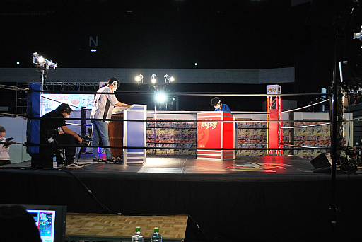 「パズドラ」は対戦スペースがリングの形になっており,見た目の演出から試合を盛り上げていた。選手たちは,リングに上がりセッティングされている台にそれぞれが立ってゲームを操作する形だ。今回,立ったまま試合するというスタイルは「パズドラ」のみである。