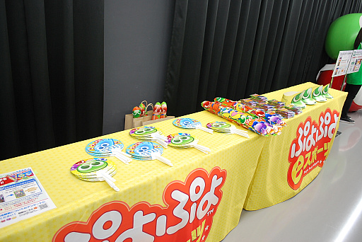 一番の盛り上がりを見せていたのが「ぷよぷよeスポーツ」のブースだ。こちらのブースでは,応援用にオリジナルデザインのスティックバルーンや,紙のサンバイザー,うちわなどを配布しており,客席が一体となって選手たちを応援し,大会を楽しんでいた。