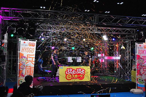 また,連鎖を組んで「ぷよ」を消すことによって,相手を邪魔するというルールから,互いに連鎖合戦を行い,ゲームが一気にひっくり返るというドラマチックな展開も観られる。勝敗が決した瞬間には観客がスティックバルーンを一斉に叩くなど,大きな盛り上がりを見せていた。