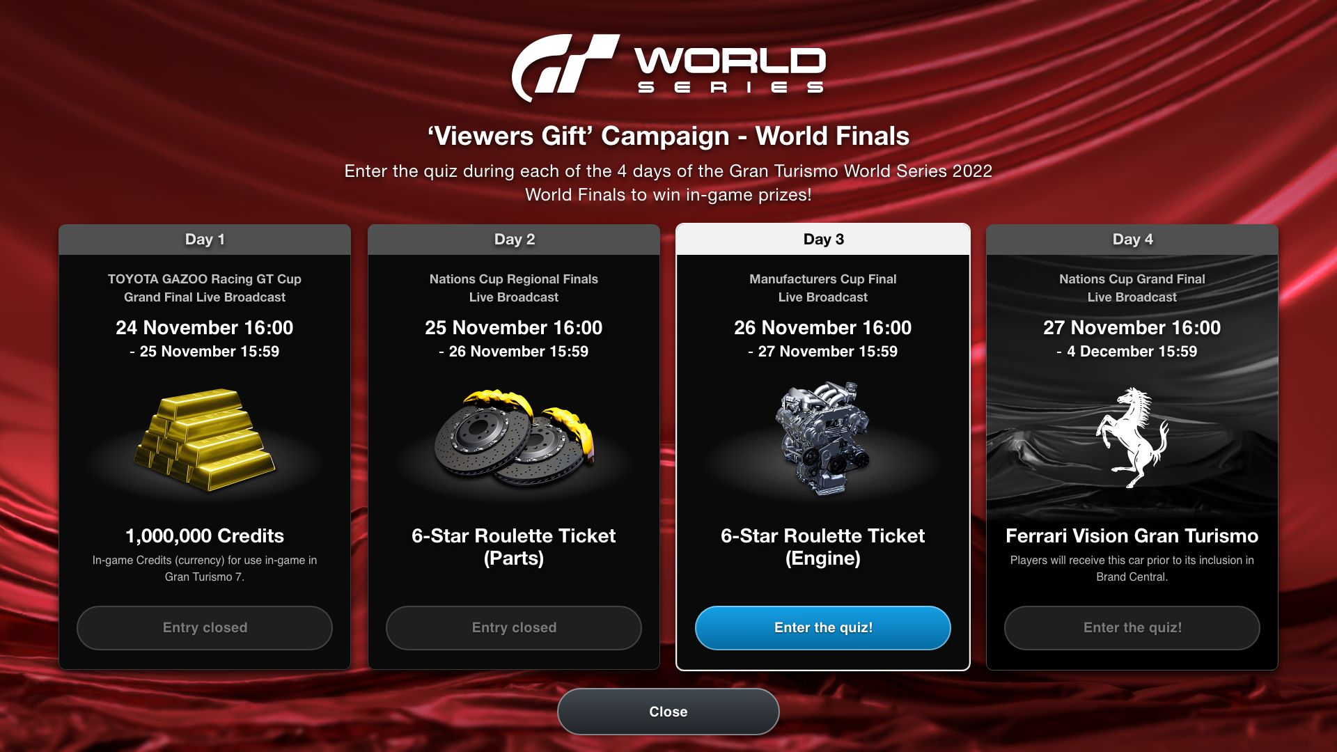 「グランツーリスモ7」,“グランツーリスモ ワールドシリーズ 2022”ファイナルの様子を2022年11月26日から4夜連続で放送