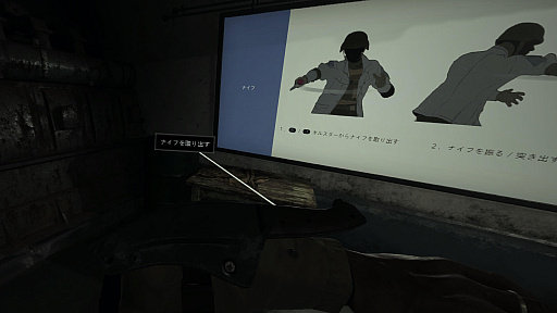 例えばナイフひとつ使うにしても,左腕の鞘に取り付けられているナイフを右手で引き抜いたうえで,振ったり突いたりといった操作をしなければならない。銃器も種類ごとに異なる操作を求められる。