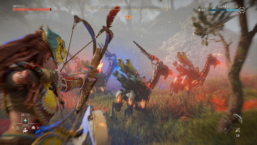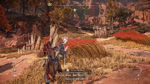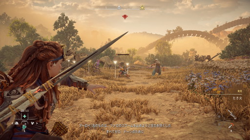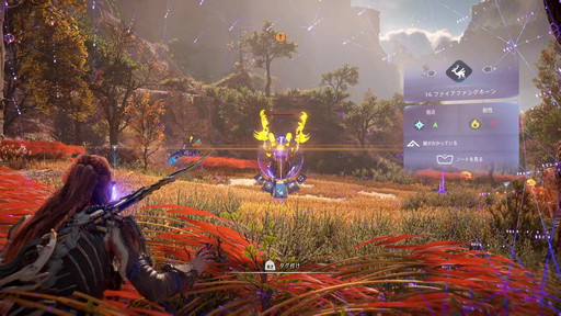 前作の物語を経て“救世主”となったアーロイは,その旅で培った経験が本作にも一部だが生きていて,最低限の弓と槍を使った攻撃,「フォーカス」を使った周囲の様子や敵の「スキャン」,序盤の機械獣を味方に付ける「オーバーライド」を最初から使用できる。
