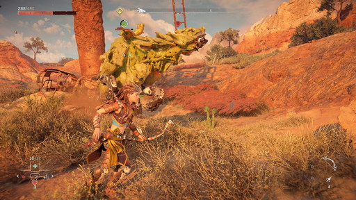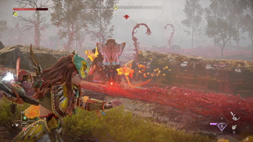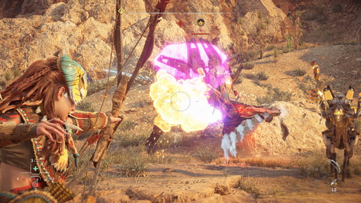 遠距離攻撃で属性の弱点を衝き,ダウンさせたところでクリティカルストライク(ダウンさせた相手に[R1]で大ダメージを与える)やコンビネーションを叩き込み,最後にレゾネーターブラストで締めるといった連係を身に付けておくと,機械相手の戦闘で勝てる確率が大きく上がるはずだ。