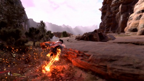 フィールド上での高速移動を可能にするアビリティが“躍動”です。これが“魔法パルクール”の基礎となります。“躍動”を使用すると岩や壁を飛び越えながら高速で移動が可能になります。“魔法パルクール”のアビリティはそれぞれスタミナ消費があるため、連続使用にはある程度制限がありますが、スタミナ管理をする上で有用な他のアビリティと組み合わせて使う事で、より自由に活動することができます。