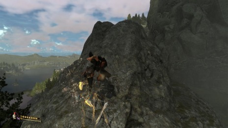 突起物などに放った糸状の魔法“繋留”は、その糸で捉えたものに向かって引き寄せて近づきます。“繋留”を使えば、ジャンプでは届かない様な場所へも移動可能で、もちろん回避などにも有効です。