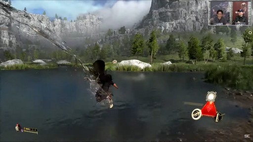 自由に移動できるオープンワールドのフィールドだが,その広さも気になる。大藤氏からマップの広さについて聞かれた寺田氏は,今回使用しているマップはエリアふたつ分ほどとのことで,本編はその何倍も広いと答えていた。