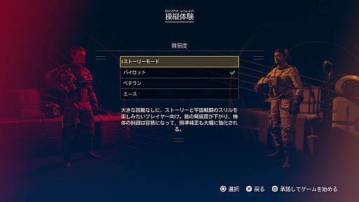 難度は4段階でいつでも変更可能。この手のゲームがあまり得意でないと思うなら,機体を制御しやすく照準補正も強化される「ストーリーモード」を選ぼう