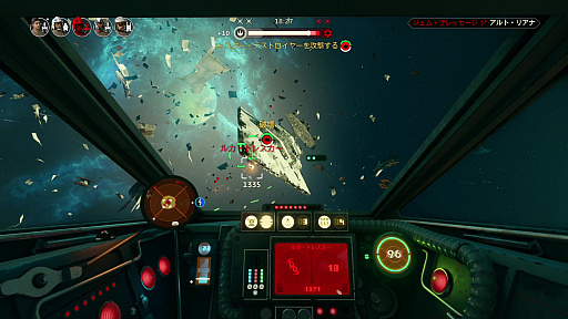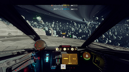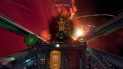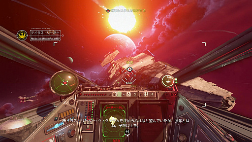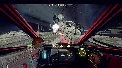 これはXウイングのコクピット。機体の速度は左側にゲージと数値で表示されている